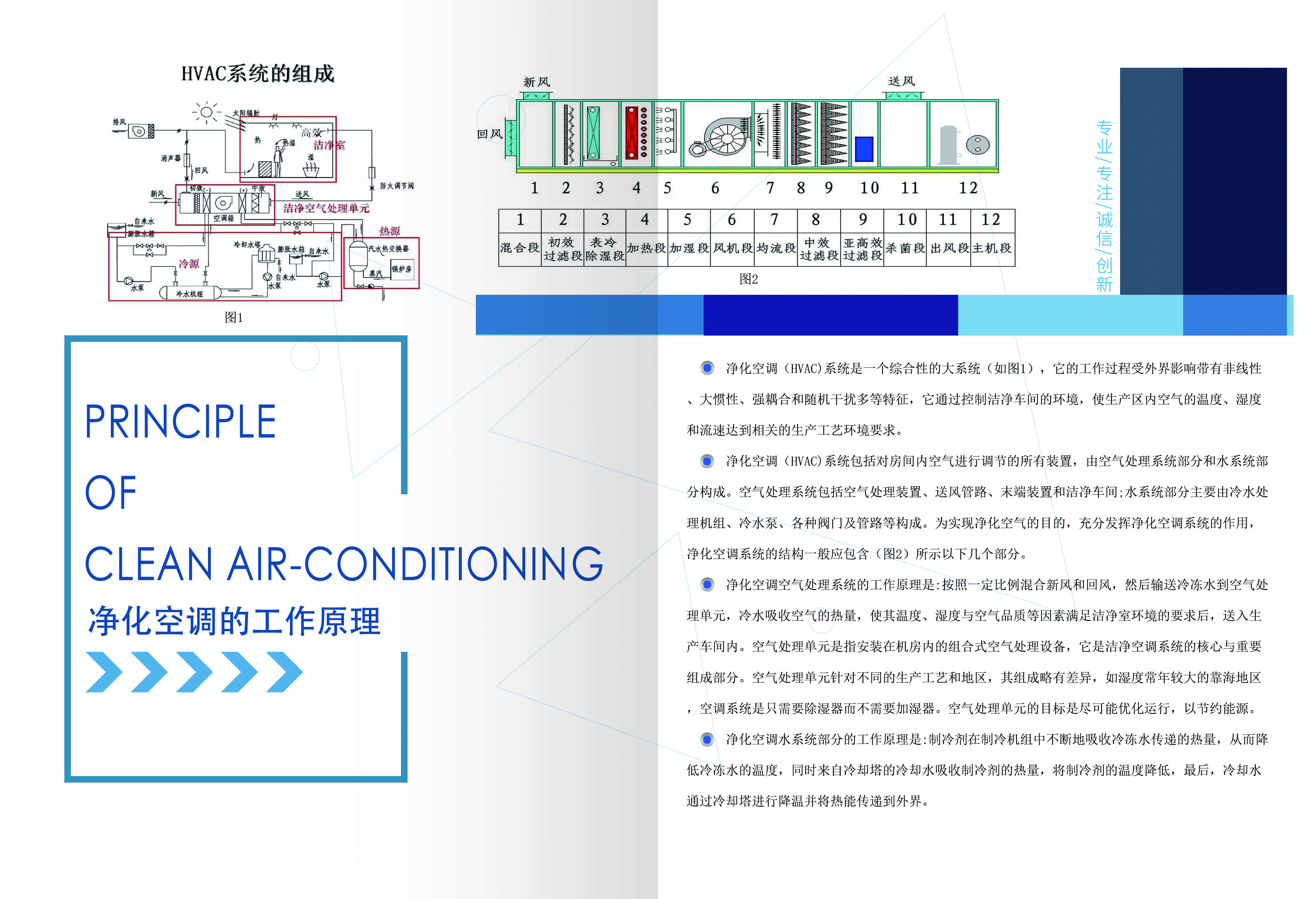 净化空调(HVAC)系统是一个综合性的大系统,它的工作过程受外界影响带有非线性、大惯性、强耦合和随机干扰多等特征,它通过控制洁净车间的环境,使生产区内空气的温度、湿度和流速达到相关的生产工艺环境要求。