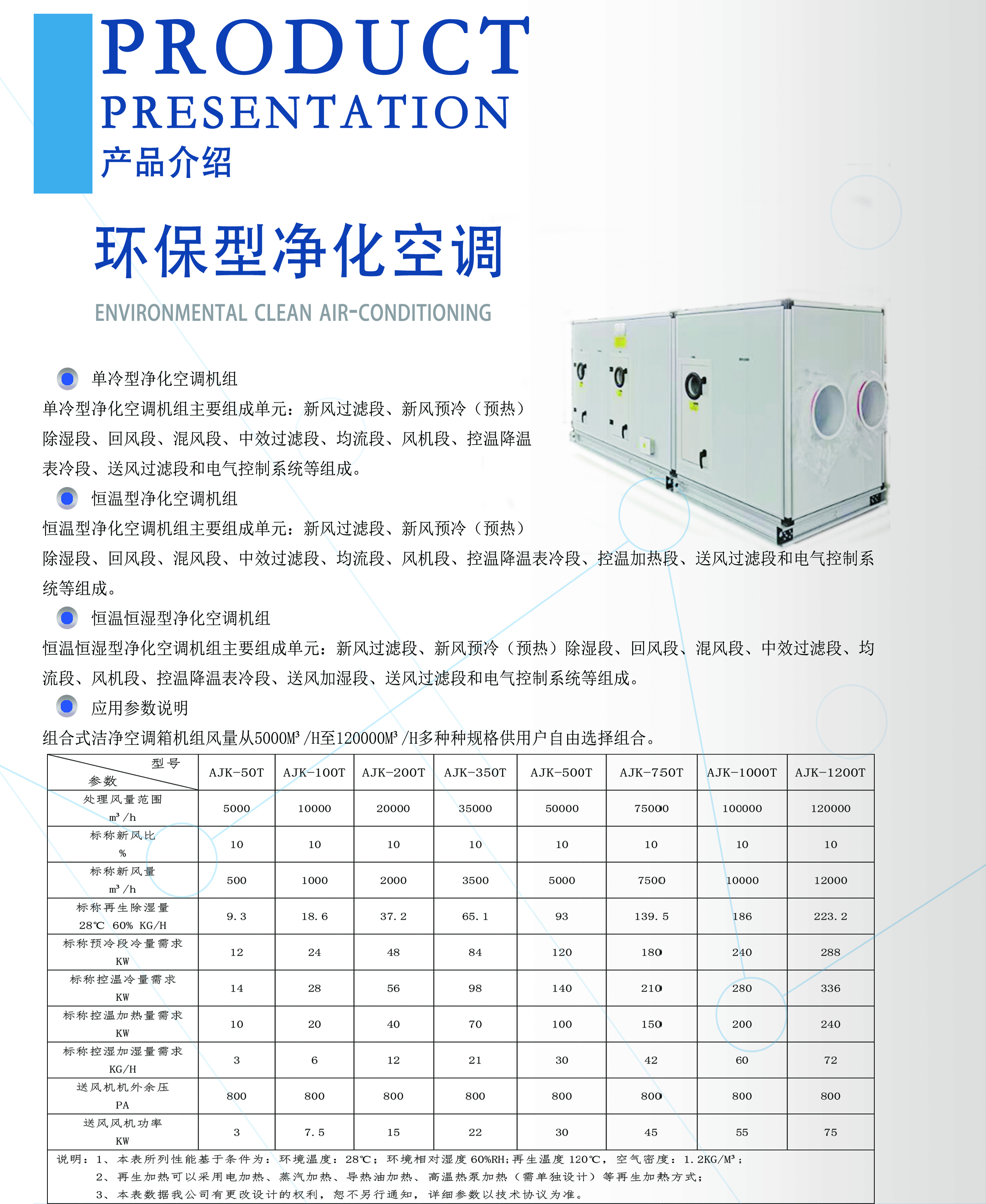 组合式洁净空调箱机组风量从5000m³/h至120000m³/h多种种规格供用户自由选择组合。